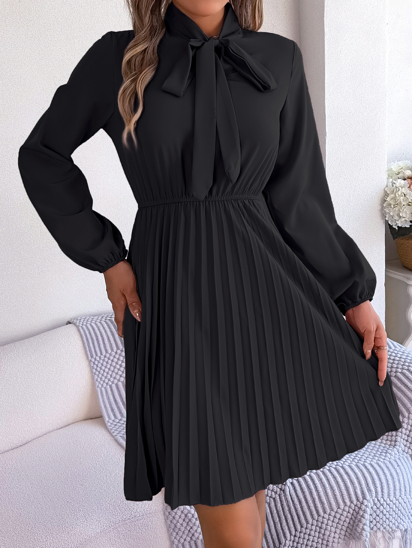 Expertly designed with a classic A-line silhouette, this knee-length chiffon dress exudes elegance and sophistication. Its solid pattern and tie neckline add a touch of femininity, while the long, regular sleeves make it suitable for daily wear during the spring and fall seasons. Made with high-quality polyester, this dress is perfect for any occasion.