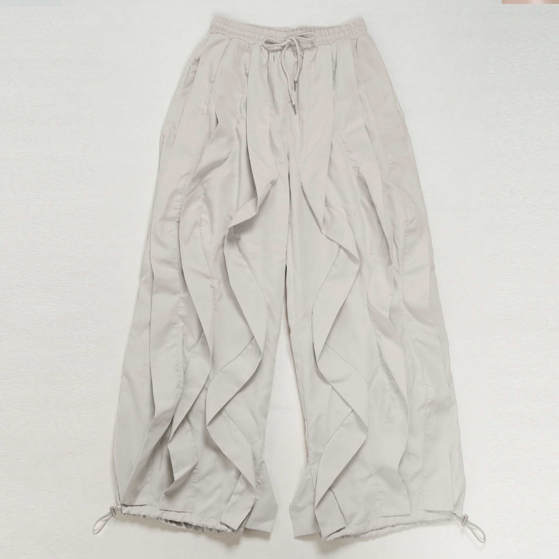 Crafted from premium polyester, these wide-leg pants deliver effortless sophistication with their high-rise silhouette and loose, casual fit. Distinctive lace detailing and delicate ruffles elevate the design, while ankle bands provide a refined finish. The solid construction ensures versatility across seasons, making these bloomers an essential addition to any contemporary wardrobe. Perfect for those seeking polished comfort without compromise.