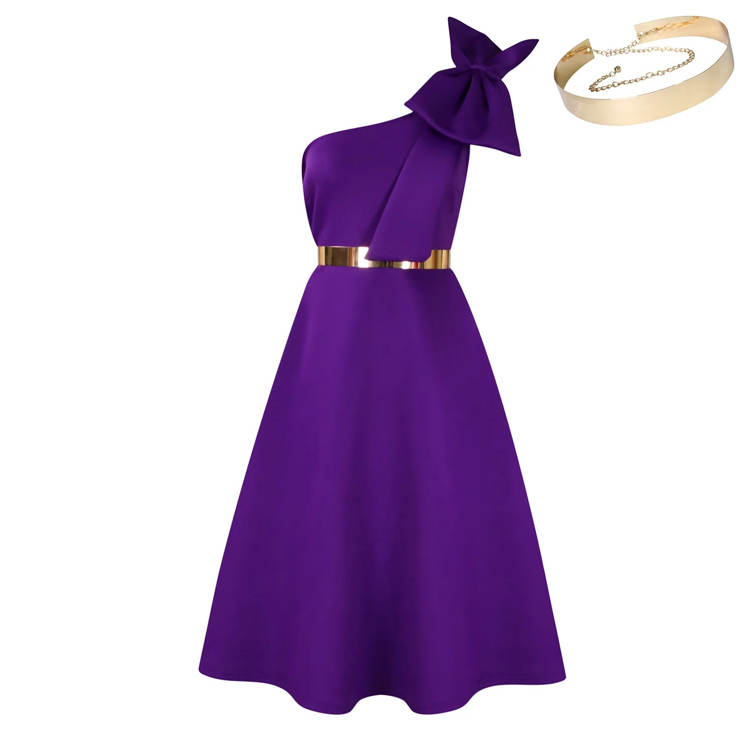 This sophisticated A-line dress features a striking one-shoulder design with an elegant diagonal neckline, perfect for elevated occasions. Crafted from lightweight polyester with subtle stretch, the knee-length silhouette offers a flattering regular fit that transitions seamlessly from office to evening wear. The sleeveless cut and natural waistline create a refined profile, while the delicate pleating and bow detailing add refined texture. The secure zipper closure ensures a polished finish. Ideal for spring and summer seasons, this piece combines contemporary styling with timeless elegance.