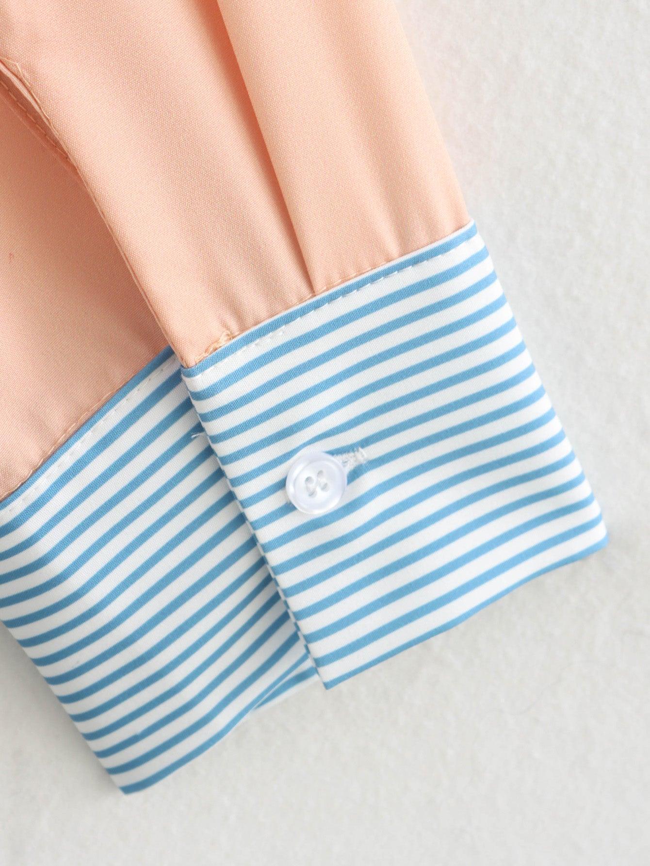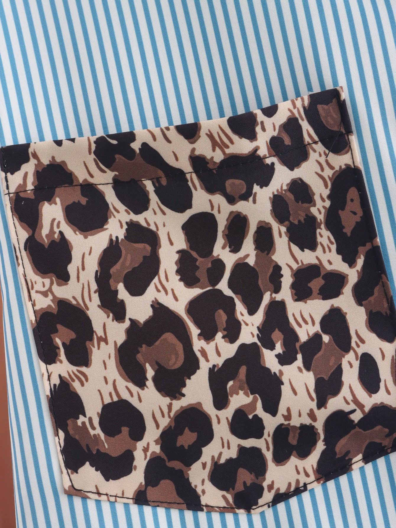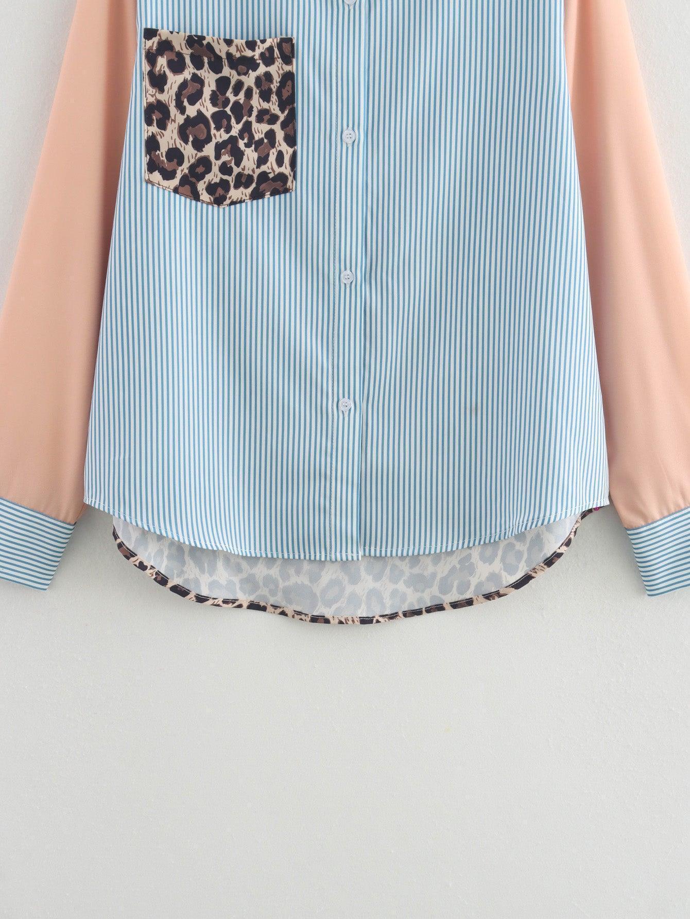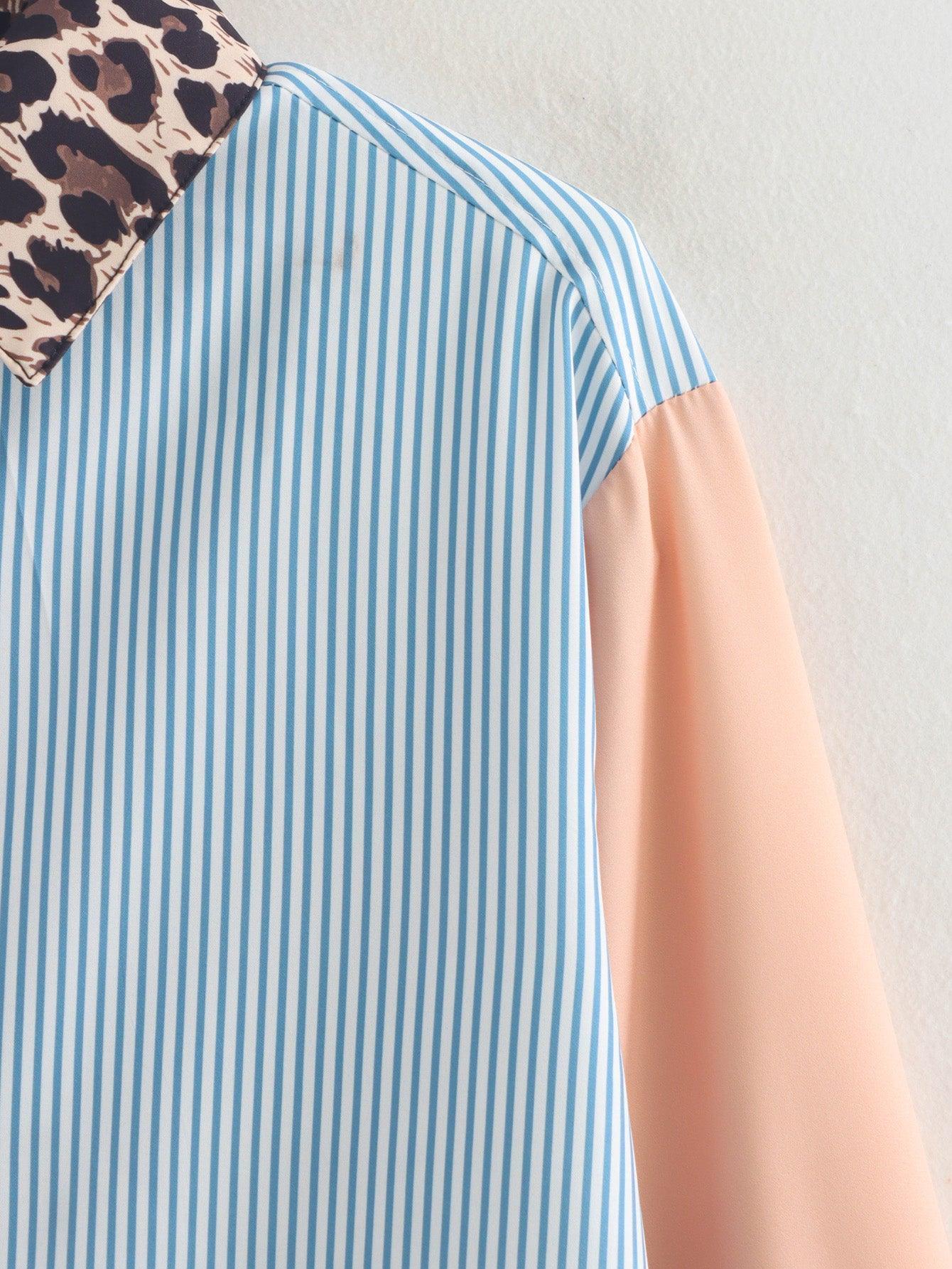 This Women Retro Loose Casual Collared Long Sleeve Shirt is made with a polyester fabric, featuring a color block, animal print, and stripe pattern. It includes button closures, pockets, and patchwork detailing, with a long top length and regular sleeve length. The polyester material is perfect for spring and fall seasons, making it a versatile addition to any wardrobe.