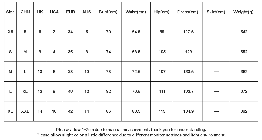Size Chart(cm):