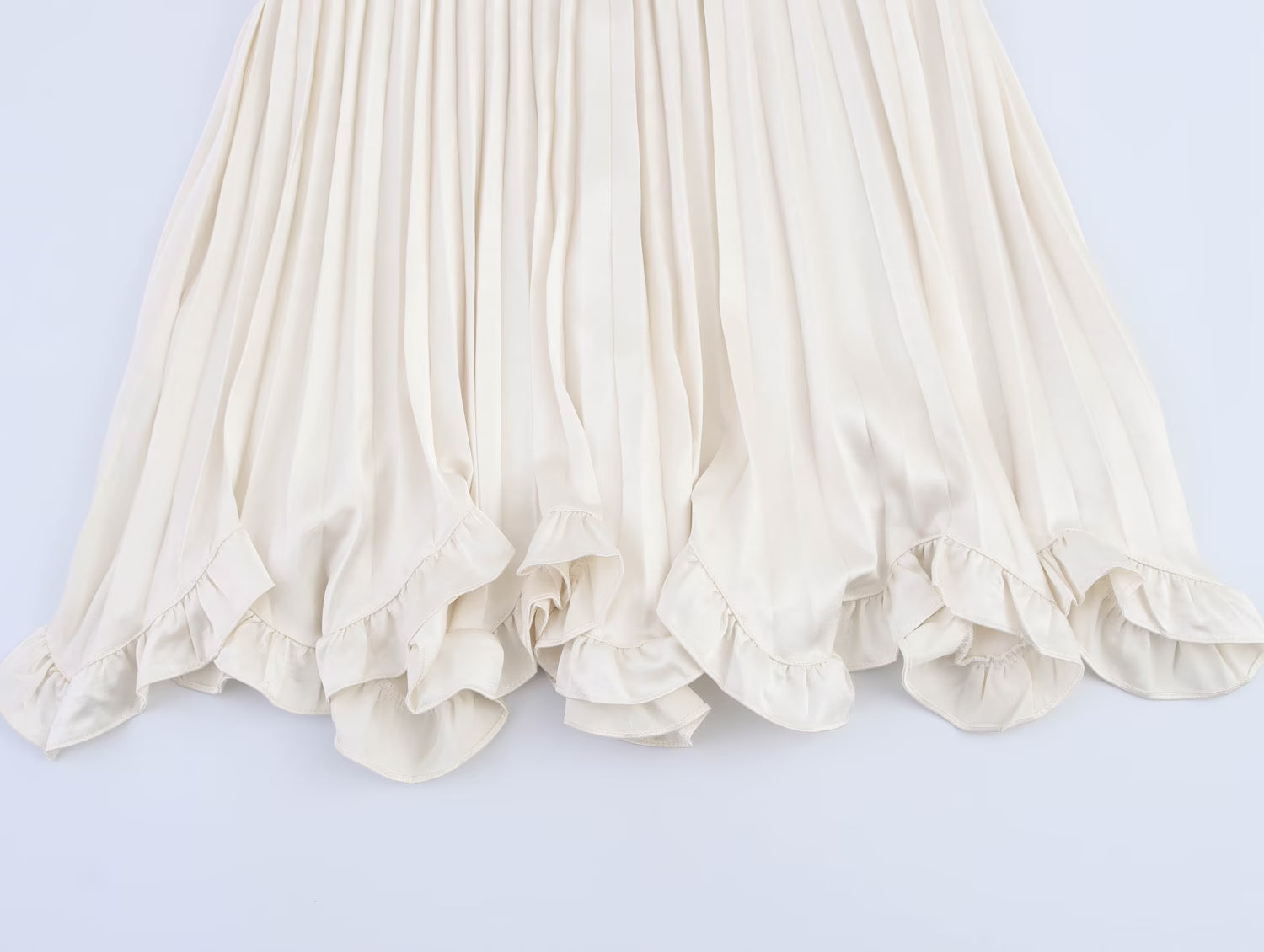 Women Summer Wooden Ear Elegant Pleated Skirt